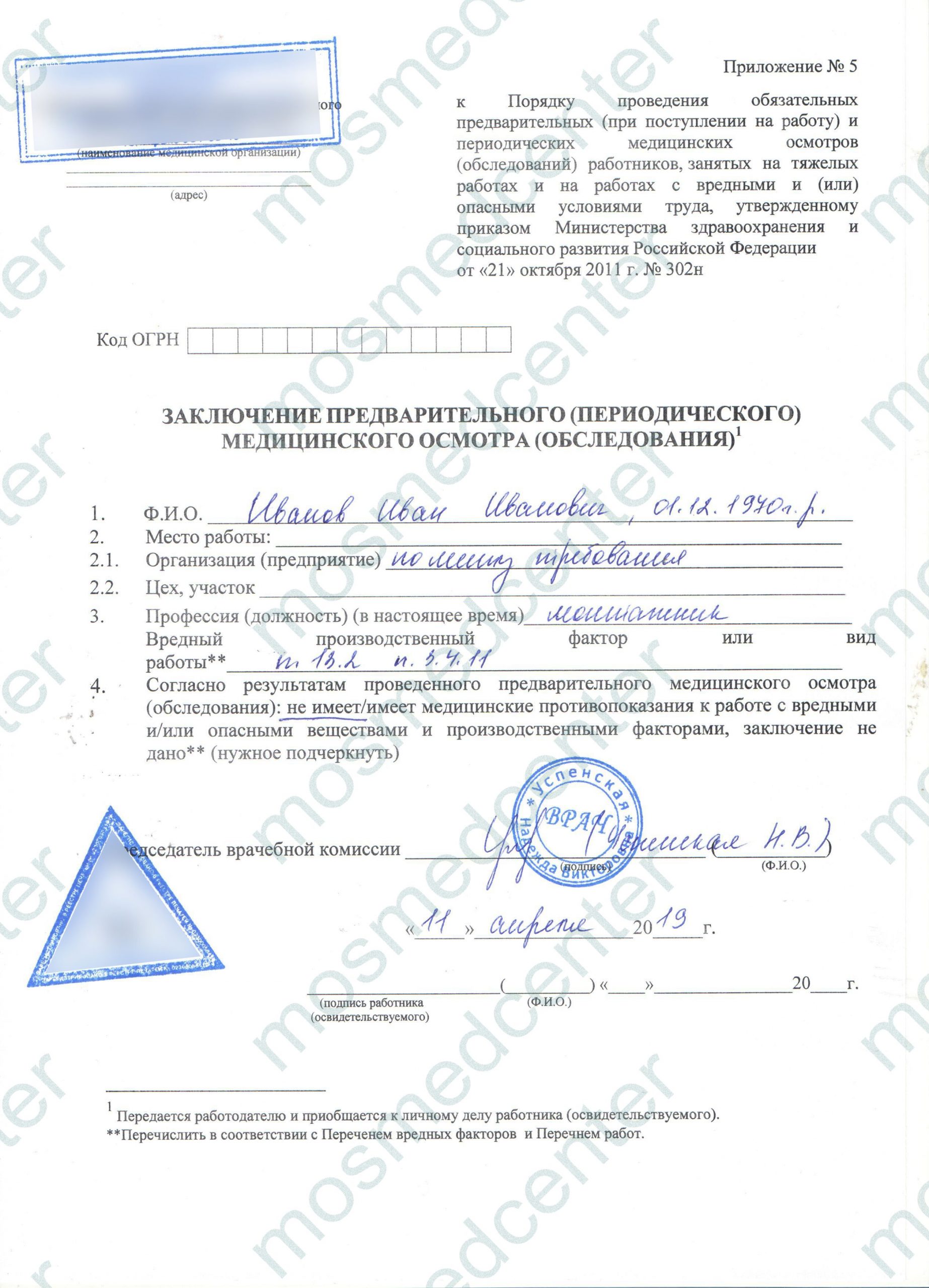 Для трудоустройства и работы на Крайнем Севере Приказом Минздравсоцразвития был утвержден закон, согласно которому обязательно пройти медкомиссию. Обследование для работы в опасных/вредных условиях труда — это периодический и предварительный медосмотр у ряда профильных врачей. По результатам обследования выдается справка по форме 302 н с заключением профпатолога.